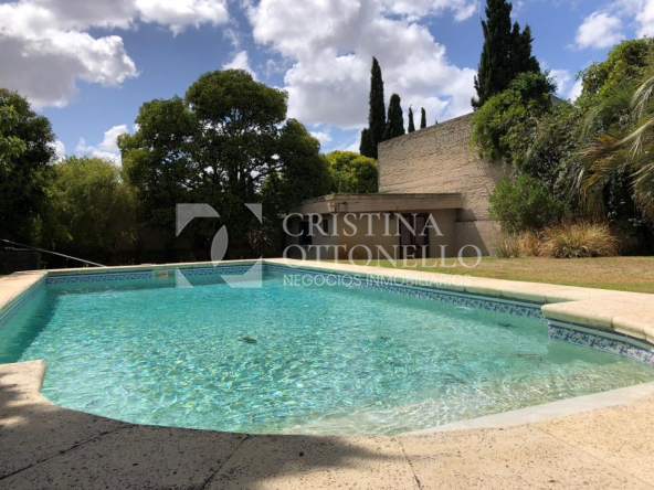 Pallier. Living con estufa a leña. Comedor con puertas corredizas. Toilette. Estar con estufa a leña. Cocina con office. PA: 4 dormitorios en suite, otro estar con estufa a leña. Dormitorio y baño de servicio. Doble circulación. Buhardillas. Calefacción central a gas. Garage para 2 autos y 4 cocheras. Fondo con piscina y barbacoa con parrillero.