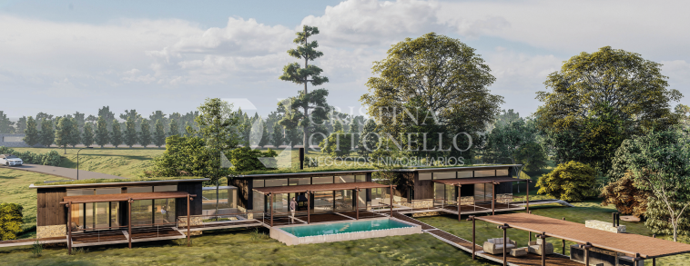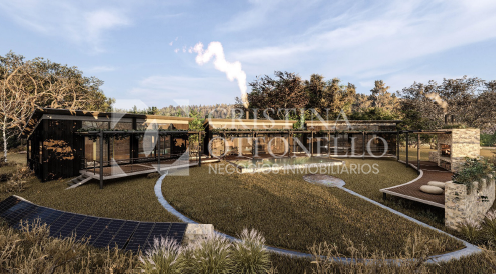 Las viviendas cuentan con arquitectura minimalista, diseño ecológico y un concepto autosustentable, integrándose de forma armónica al paisaje serrano.